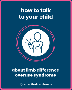 Read MorePeople upper limb differences (ULD) are at heightened risk of developing overuse syndrome over their lifetimes due to strain on the dominant side. Learn how to reduce the effects of overuse syndrome through intentional choices of adaptive equipment, awareness of biomechanics and posture, examination of societal messages, etc.