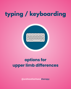 We delve into the factors that affect typing and accessing a computer for children and young adults with hand/arm differences, including strain to the “dominant” hand as well as incorporating the “affected” hand or arm. While ergonomics is important for everyone who types, it is even more important for children with hand/arm differences