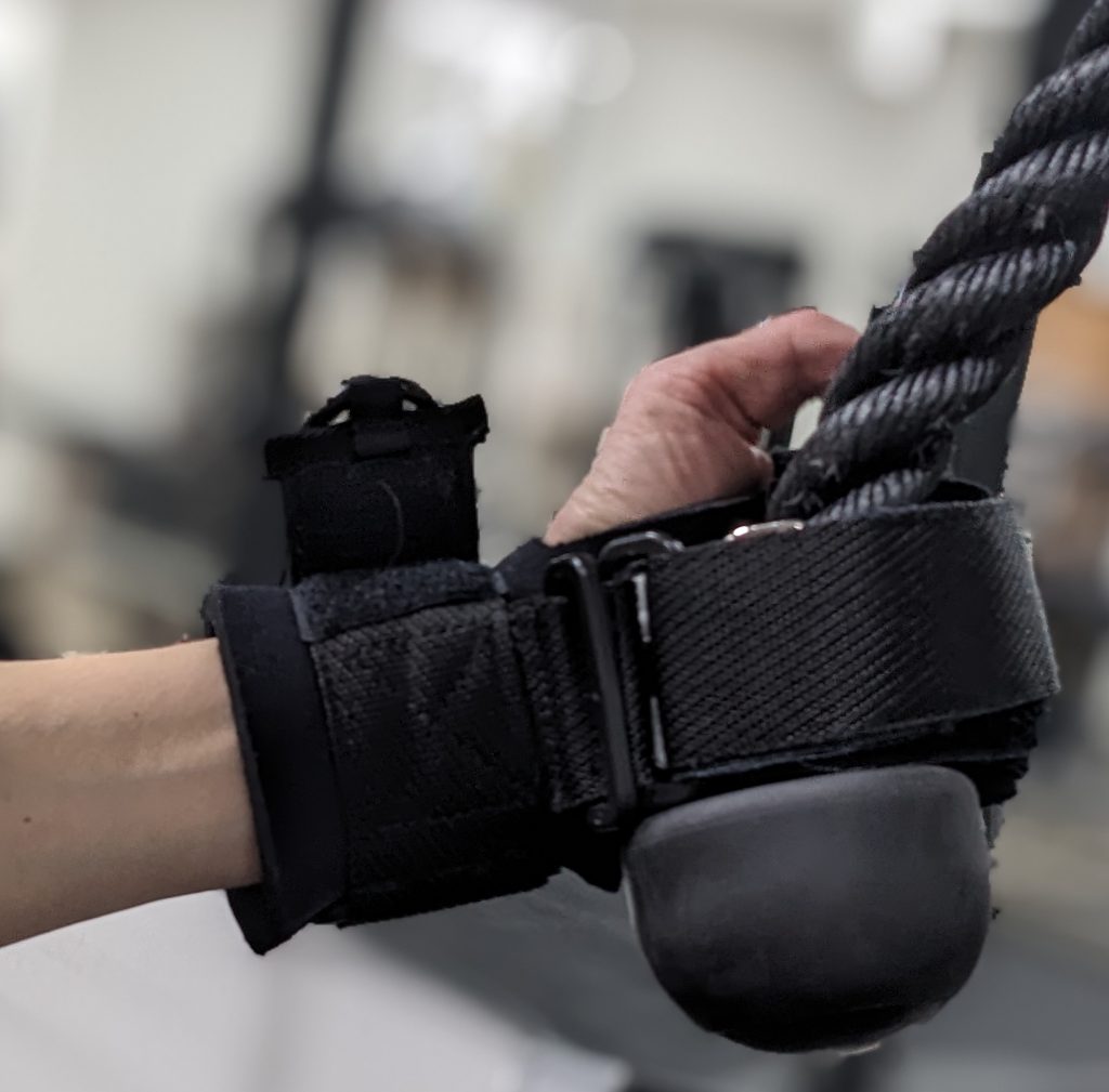 A strap system that secures the hand around a handle (must have a wrist to use this version). I adapted mine to fit my hand more comfortably.